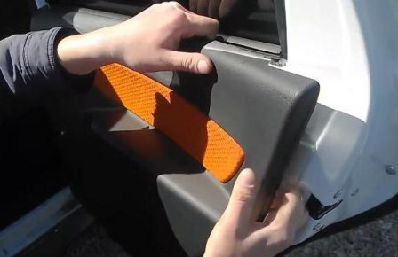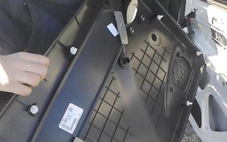 - Пластиковая карта крепится к металлическому кузову на десяти клипсах. В процессе демонтажа будьте предельно внимательны, так как клипсы слишком хрупкие, часто ломаются.
