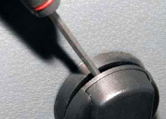 - Поддеваем пластиковую вставку по центру карты, выкручиваем болт.