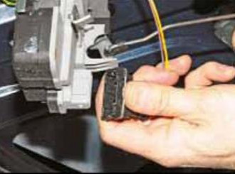 - Извлекаем замок в сборе с электрическим приводом через специальное технологическое окно.