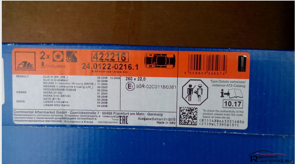 Задние тормозные диски на Лада Веста ATE | От 2700 — 2900 |